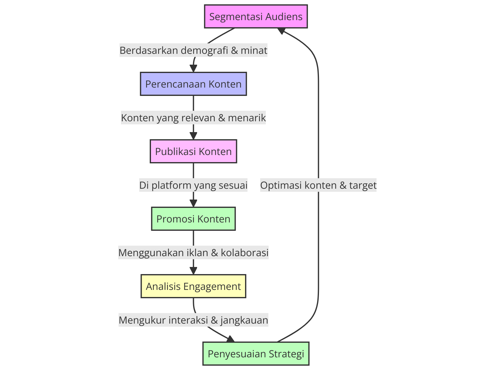 Selain itu, distribusi dan promosi konten juga krusial agar dapat dilihat oleh audiens target Anda, yang dapat melibatkan strategi SEO, media sosial, dan email marketing.