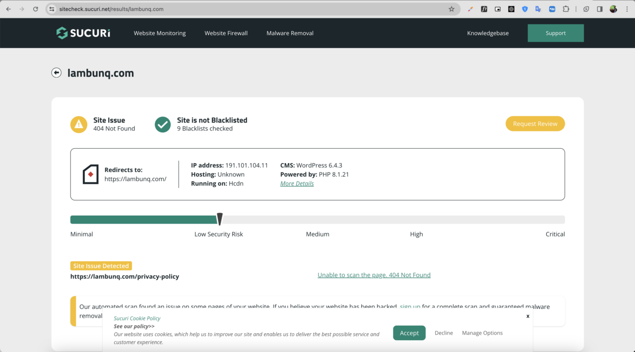 Setelah pemindaian selesai, Sucuri SiteCheck menyediakan laporan terperinci yang mencakup temuan dan rekomendasi untuk memperbaiki masalah keamanan yang ditemukan. Laporan ini berharga untuk memandu langkah-langkah perbaikan keamanan website.