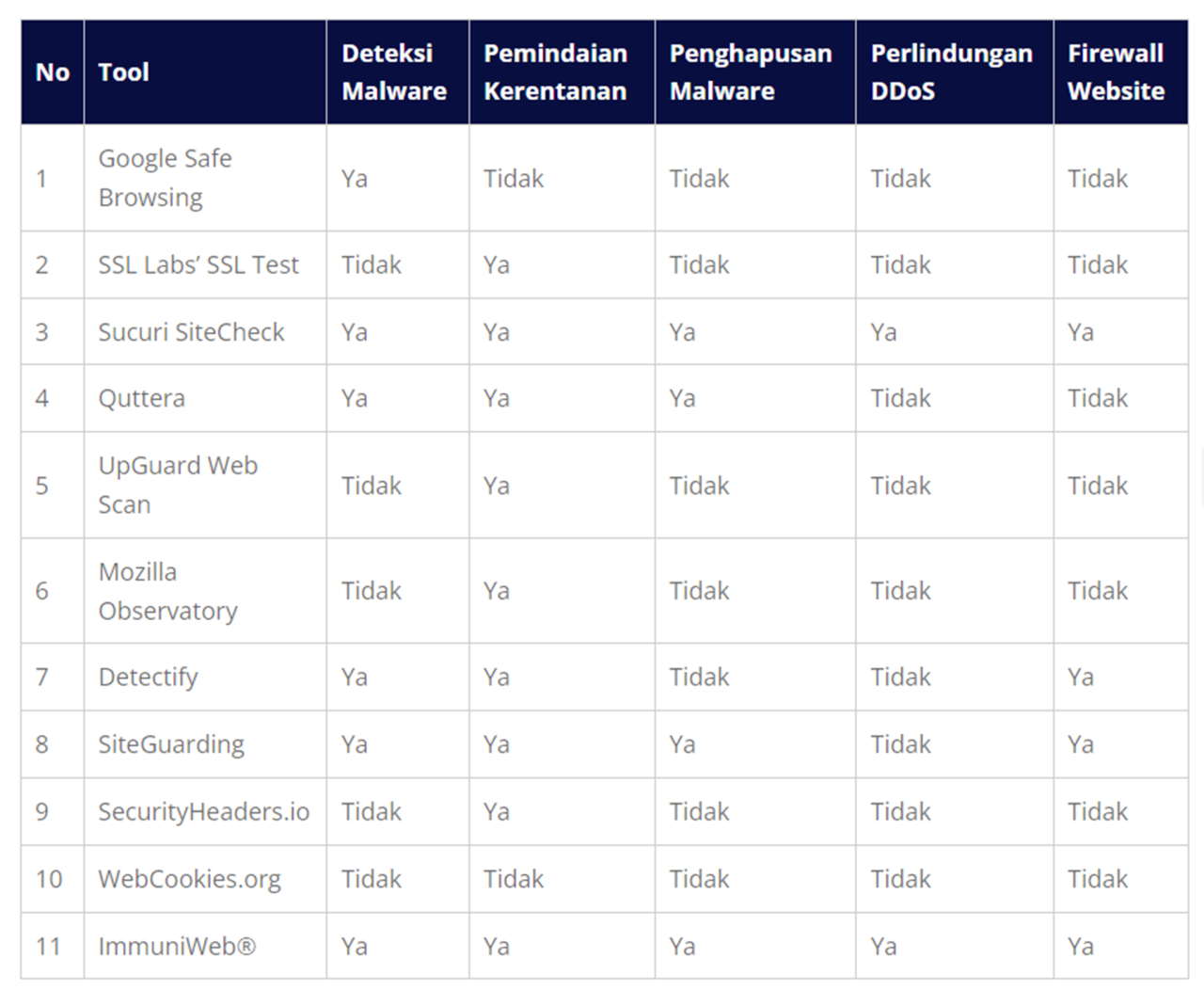 Tabel perbandingan di atas menunjukkan bahwa sementara banyak tools menawarkan berbagai fitur keamanan, Sucuri SiteCheck menawarkan paket lengkap yang diperlukan untuk menjaga keamanan website di era digital saat ini. Ini membuatnya menjadi pilihan yang ideal untuk bisnis yang serius dalam melindungi aset digital mereka.
