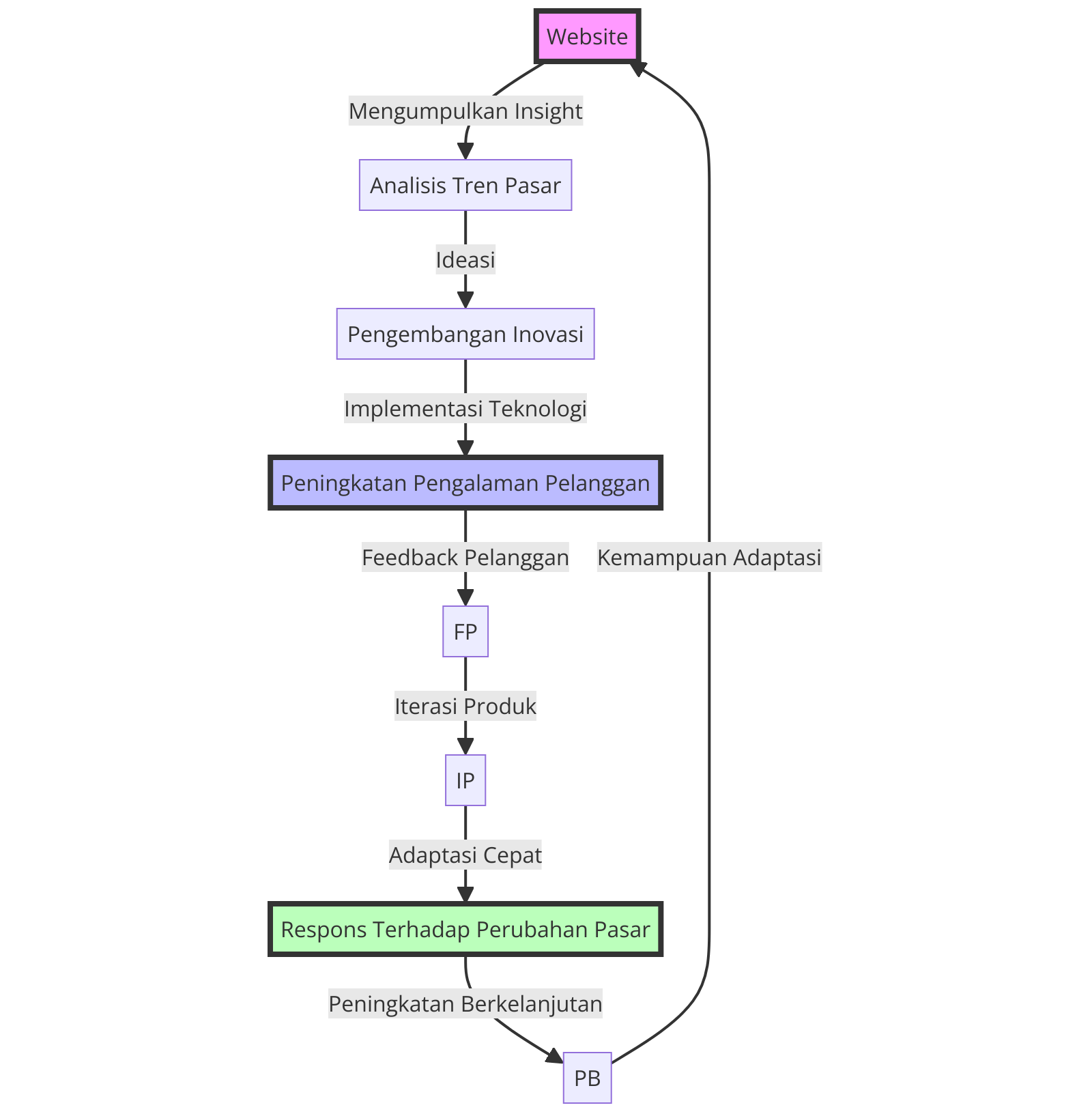 Alur Inovasi Bisnis Melalui Website Menunjukkan bagaimana bisnis dapat merespons tren pasar dan menerapkan teknologi baru untuk meningkatkan pengalaman pelanggan