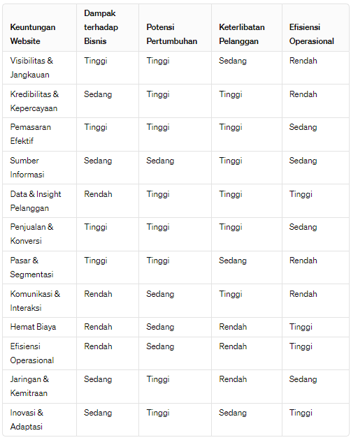 Tabel Perbandingan Keuntungan Website dan Dampaknya terhadap Bisnis