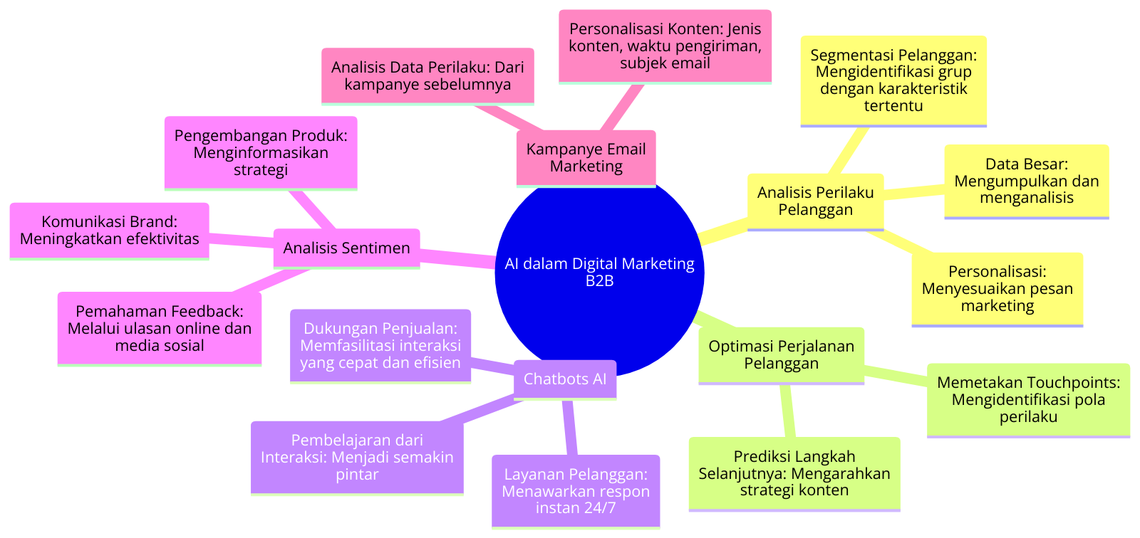 Dalam era digital marketing B2B saat ini, penggunaan AI (Artificial Intelligence) untuk pemahaman pelanggan lebih dalam menandai evolusi signifikan dalam strategi bisnis. AI membuka peluang baru untuk analisis data dan personalisasi yang belum pernah ada sebelumnya, memungkinkan perusahaan untuk mengenal audiens mereka dengan cara yang lebih intim dan efektif. Teknologi ini memanfaatkan algoritma canggih untuk mengolah dan menganalisis data besar dalam waktu nyata, memberikan wawasan mendalam tentang perilaku, preferensi, dan kebutuhan pelanggan.